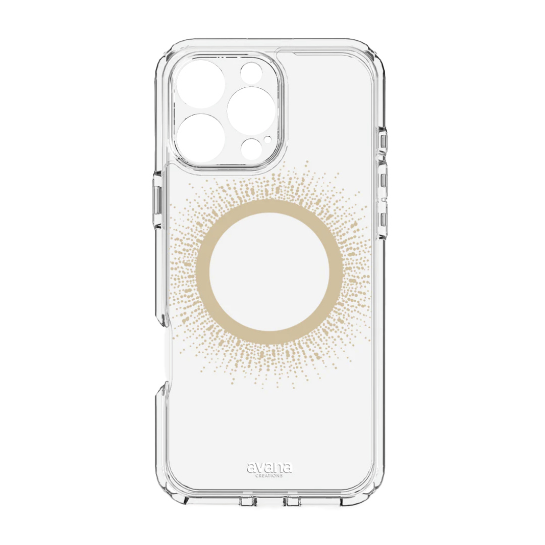 _________________________________________________________ Somos DASTORE, una tienda especializada en productos Top Premium. Trabajamos con reconocidas marcas importadas de USA / Corea. Al comprar en DASTORE nos comprometemos a entregarte un producto 100% original, nuevo, con la calidad que te mereces y por el precio que estás pagando. _________________________________________________________ Más que brillo, es presencia con poder Su diseño transparente con foil metálico no solo hipnotiza, también oculta el anillo MagSafe. Todo se ve limpio, sofisticado, y con un toque celestial. Hecha 100% con materiales reciclados, resiste caídas de hasta 3 metros como si fueran caricias. Además, cuenta con tecnología MagSafe para que lo eleves al siguiente nivel con los accesorios más épicos. Permite hacer pagos con Apple Pay. Con orificios en la parte inferior del dispositivo para la conexión de accesorios como correas de mano y de hombro . * Compatible con protectores de cámara, protectores de pantalla (de las marcas Ringke y Spigen). Tipo: Case, Funda Marca: Avana País de origen: USA Material Híbrido: TPU flexible (cuerpo) + PC rígido (parte trasera) Nivel de resistencia: Alto Compatibilidad: iPhone 16 Pro Max Protección avanzada Tecnología AirCushion en las esquinas para proteger tu celular contra daños internos.
