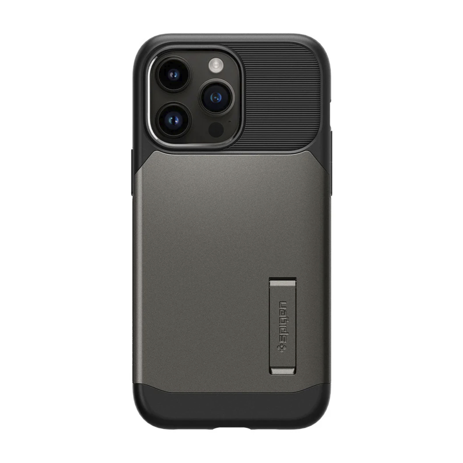 --------------------------------------------------------------------------------------------------------------------- Somos DASTORE, una tienda especializada en productos Top Premium. Trabajamos con reconocidas marcas importadas de USA / Corea. Al comprar en DASTORE nos comprometemos a entregarte un producto 100% original, nuevo, con la calidad que te mereces y por el precio que estás pagando. --------------------------------------------------------------------------------------------------------------------- Alta Protección sofisticada Un diseño inteligente que mantiene su teléfono como nuevo. El Slim Armor® muestra el aspecto de su dispositivo, mientras que el parachoques exterior agrega protección en los bordes y el respaldo lo mantiene libre de rayones. Además, el pie de apoyo brinda un nuevo nivel de comodidad de visualización. Diseñado en USA, California, con los mejores materiales de fabricación. Con MagSafe integrado para cargar con total comodidad. Tipo Case, Funda Marca Spigen País de origen USA Material Híbrido: TPU flexible + PC rígido Nivel de resistencia Alto Compatibilidad iPhone 14 Protección avanzada Disfruta la tranquilidad en todo momento, Spigen Slim combina 2 capas separables: interior de TPU flexible y cubierta de Policarbonato de doble capa rígido. Además posee certificación MIL-STD 810G - 516.6 (Prueba profesional de impacto durante 26 veces seguidas a 1.2m de altura).