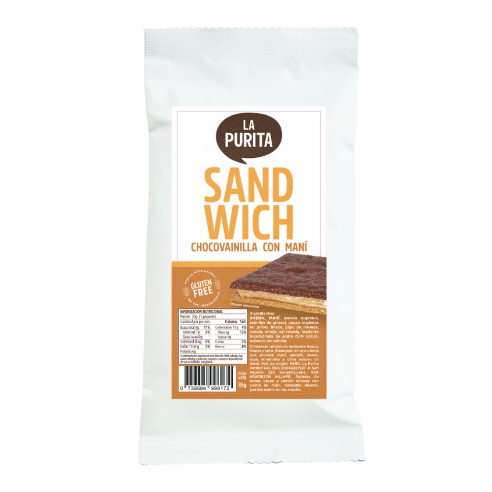 Galleta Chocovainilla Relleno de Maní La Purita - Bolsa 35g
