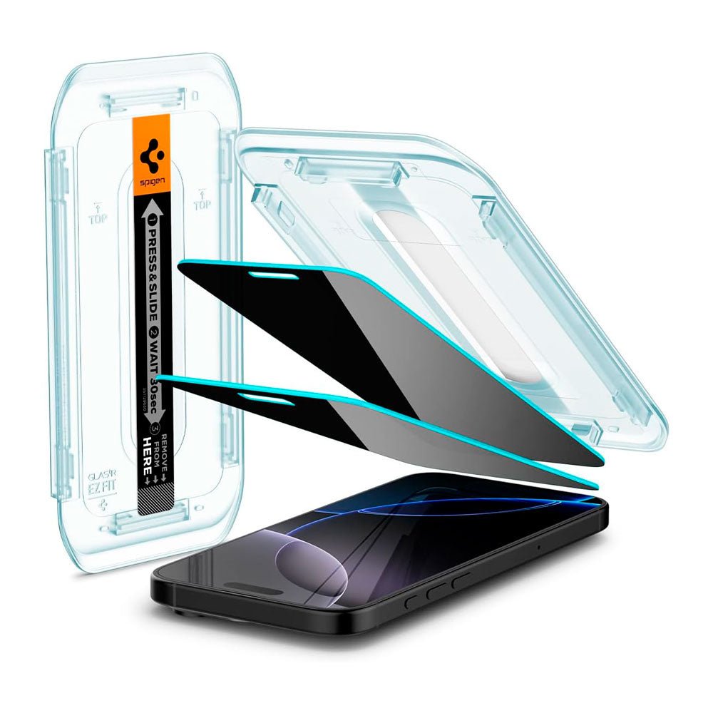 --------------------------------------------------------------------- Somos DASTORE, una tienda especializada en productos Top Premium. Trabajamos con reconocidas marcas importadas de USA / Corea. Al comprar en DASTORE nos comprometemos a entregarte un producto 100% original, nuevo, con la calidad que te mereces y por el precio que estás pagando. ---------------------------------------------------------------------- Mica de vidrio anti espía Diseñada para proteger y mantener la privacidad, únicamente te permite visualizar la pantalla de tu iPhone de manera frontal, así que nadie más podrá espiarte desde otro ángulo. La protección de su pantalla no es ninguna broma, nuestros productos han pasado por las revisiones más sofisticadas para medir su resistencia. La superficie curva se adhiere completamente a la pantalla del iPhone, resistente a las rayaduras, impactos y huellas. Tipo Protector de pantalla anti espía con instalador Marca Spigen País de origen USA Material Vidrio Templado Contenido 2 unidades EZ FIT GLAS.tR Privacy Espesor 0.33mm Nivel de resistencia 9H Alto Compatibilidad iPhone 16 Pro Tecnología en tus dedos La transmisión de luz es de hasta el 99.9%, por lo cual la claridad de la pantalla se mantiene intacta. Procesado en Alemania por una máquina de control numérico CNC de alta precisión.