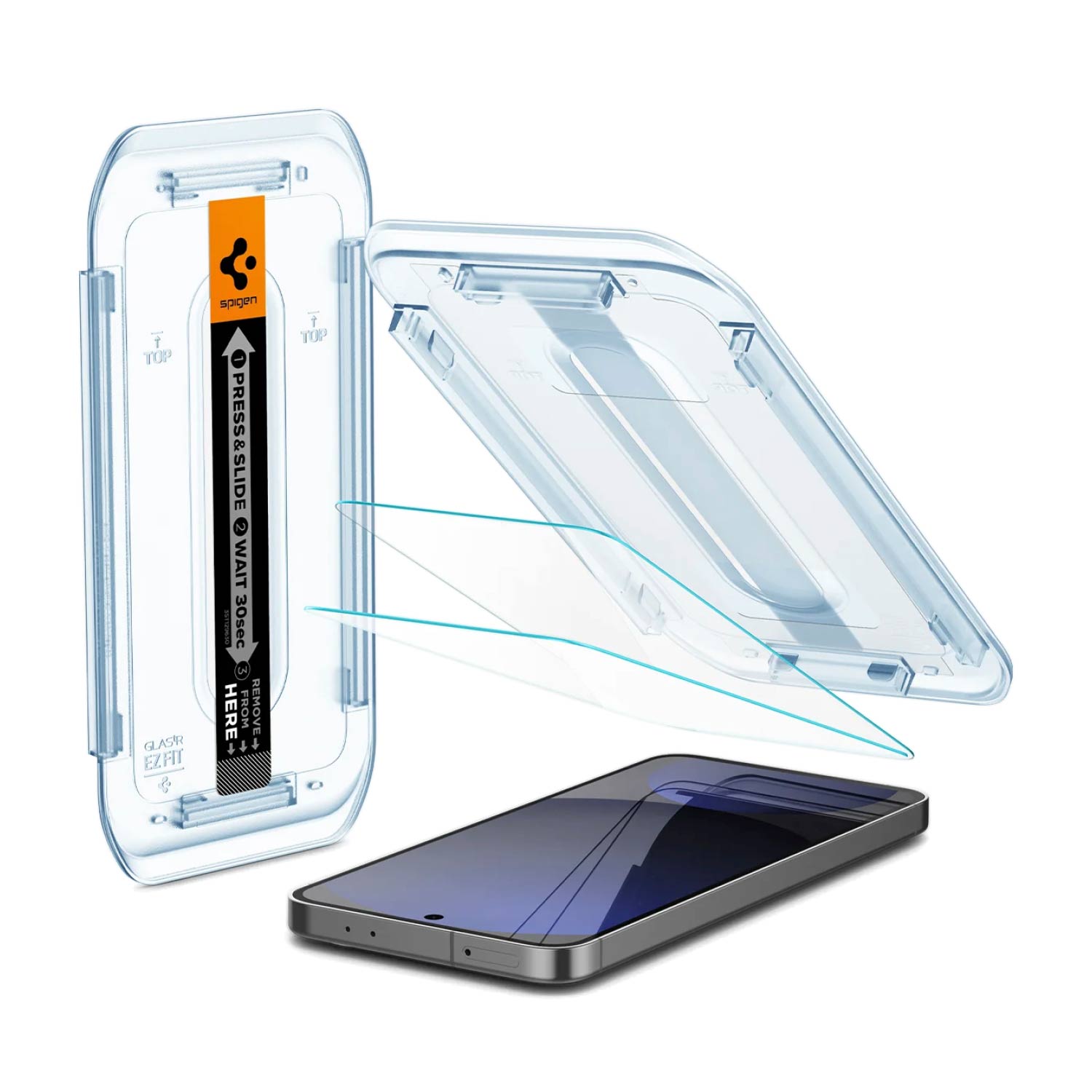 --------------------------------------------------------------------- Somos DASTORE, una tienda especializada en productos Top Premium. Trabajamos con reconocidas marcas importadas de USA / Corea. Al comprar en DASTORE nos comprometemos a entregarte un producto 100% original, nuevo, con la calidad que te mereces y por el precio que estás pagando. ---------------------------------------------------------------------- Calidad superior para una experiencia completa Salva tu pantalla, tu tiempo y tus sensores. EZ Fit SP simplifica la instalación del protector de pantalla. Utiliza la herramienta de alineación para colocar el protector en tu Galaxy, presiona suavemente y ¡listo! Es fácil y sencillo. La superficie se adhiere completamente a la pantalla, resistente a las rayaduras, impactos y huellas. Tipo Protector de pantalla con instalador Marca Spigen País de origen USA Material Vidrio Templado Contenido 2 unidades EZ FIT GLAS.tR Espesor 0.33mm Nivel de resistencia 9H Alto Compatibilidad Galaxy S24 FE Tecnología en tus dedos La transmisión de luz es de hasta el 99.9%, por lo cual la claridad de la pantalla se mantiene intacta. Procesado en Alemania por una máquina de control numérico CNC de alta precisión.